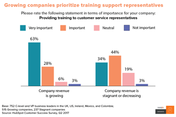 Where is the investment going? When it comes to training, there's a clear priority amongst growing companies to ensure their service representatives can handle whatever a customer throws at them. Growing businesses are almost twice as likely to rate training their customer service representatives as very important.
